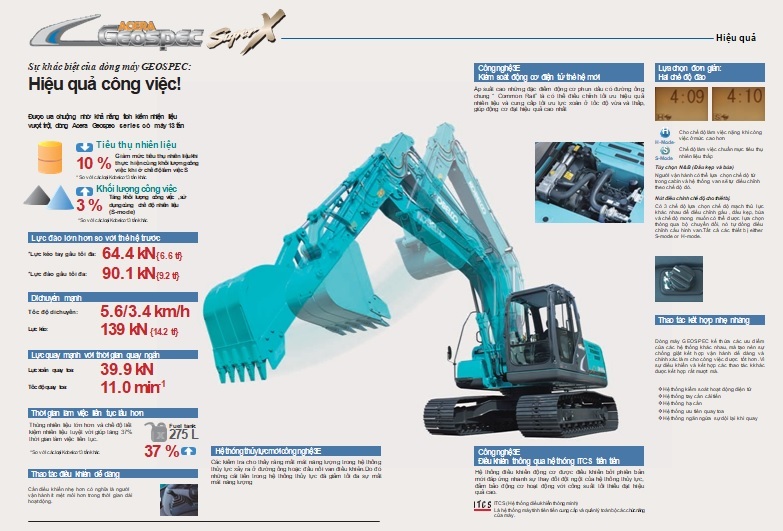 ACERA GEOSPEC KOBELCO SK130-8 (Máy xúc đào bánh xích Kobelco SK130-8) được biết đến với hiệu quả công việc cao hơn, chi phí nhiên liệu thấp hơn.