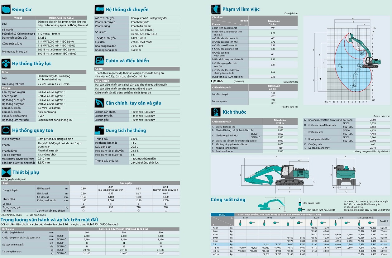 Hệ thống của máy xúc Sk200-10 khỏe hơn, dễ dàng di chuyển trên nhiều địa hình đất đá.