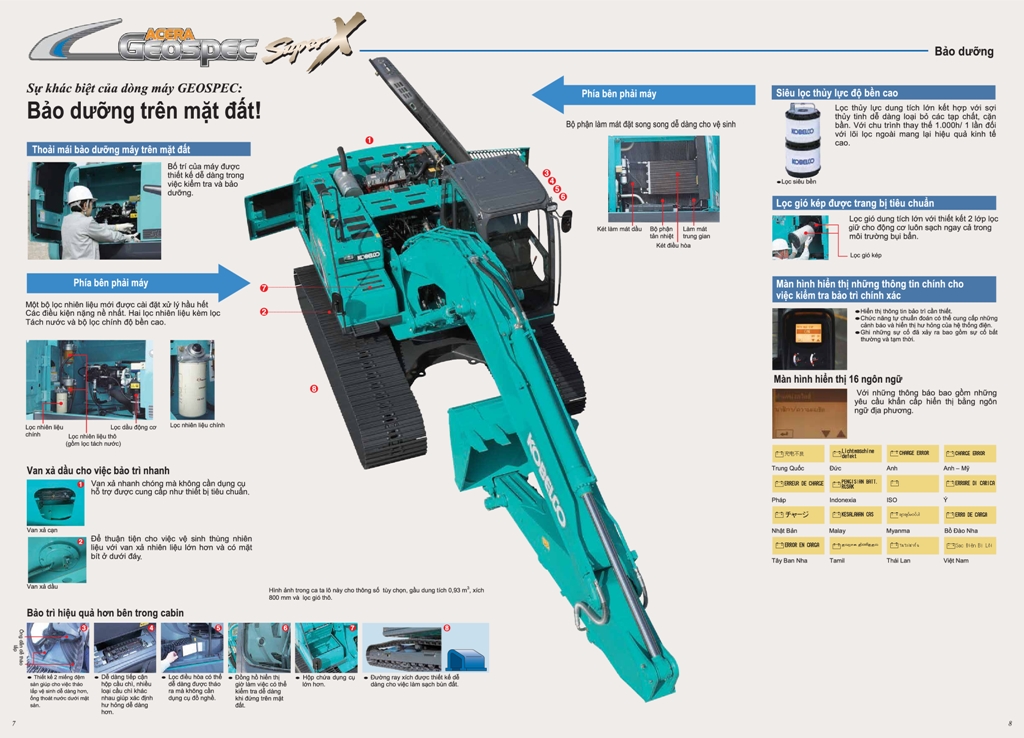ACERA GEOSPEC KOBELCO SK200-8 (Máy xúc đào bánh xích Kobelco SK200-8) được thiết kế với các vị trí bảo dưỡng định kỳ rất thuận tiện,dễ dàng khi bảo dưỡng hoặc thay thế phụ tùng.