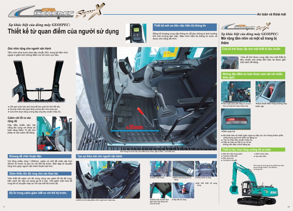 Thiết kế của ca bin Máy xúc đào bánh xích Kobelco SK200-8 (ACERA GEOSPEC KOBELCO SK200-8) được Kobelco lấy từ quan điểm người sử dụng nên tính tiện nghi, an toàn và thoải mái là ưu tiên hàng đầu, cụ thể: